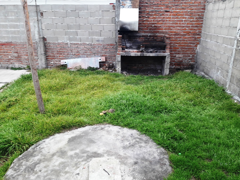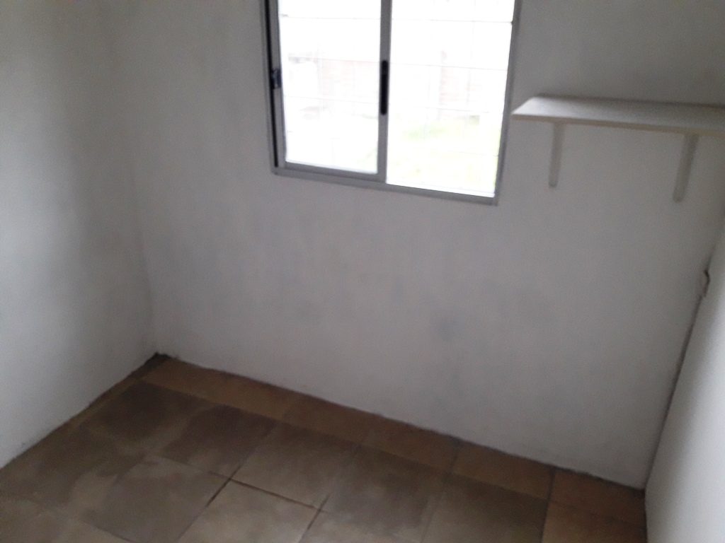 Casa en alquiler de 2 dormitorios, baño, cocina comedor, fondo con churrasquera, espacio guarda coche al frente.